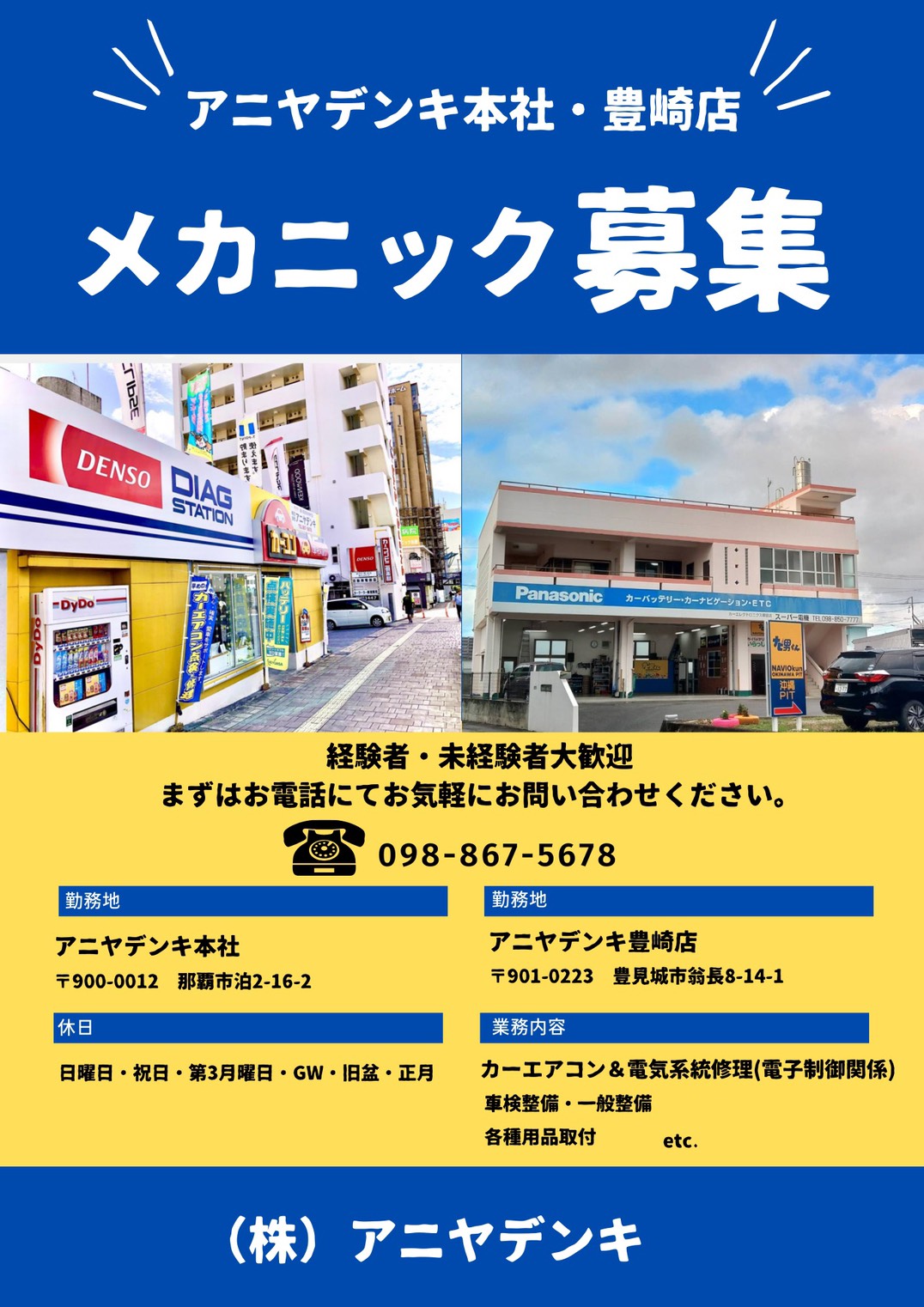 定休日:日曜日・祝日・